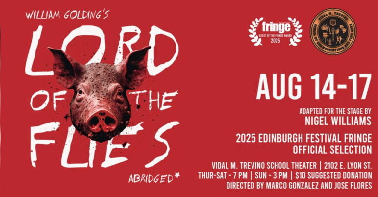 If you’re a fan of award-winning live theater, don’t miss the final stage performance of William Golding’s Lord of the Flies on Sun., Aug. 17, by students of the drama department of the Vidal M. Treviño School of Communications and Fine Arts.